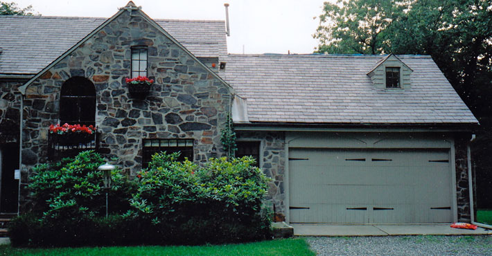Only the right wall of this garage was saved and a large addition went on the right side of it.