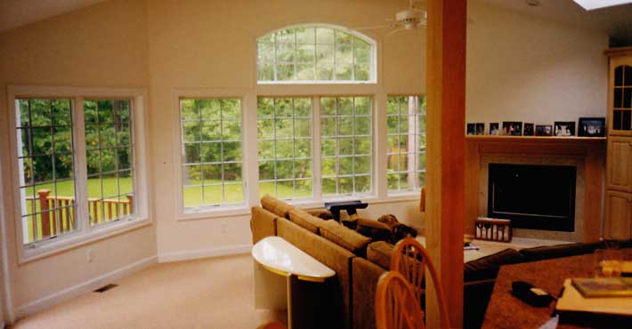 This Wayland colonial saw the addition of a 2-car garage, mudroom, master suite above plus a new kitchen, family room and deck.